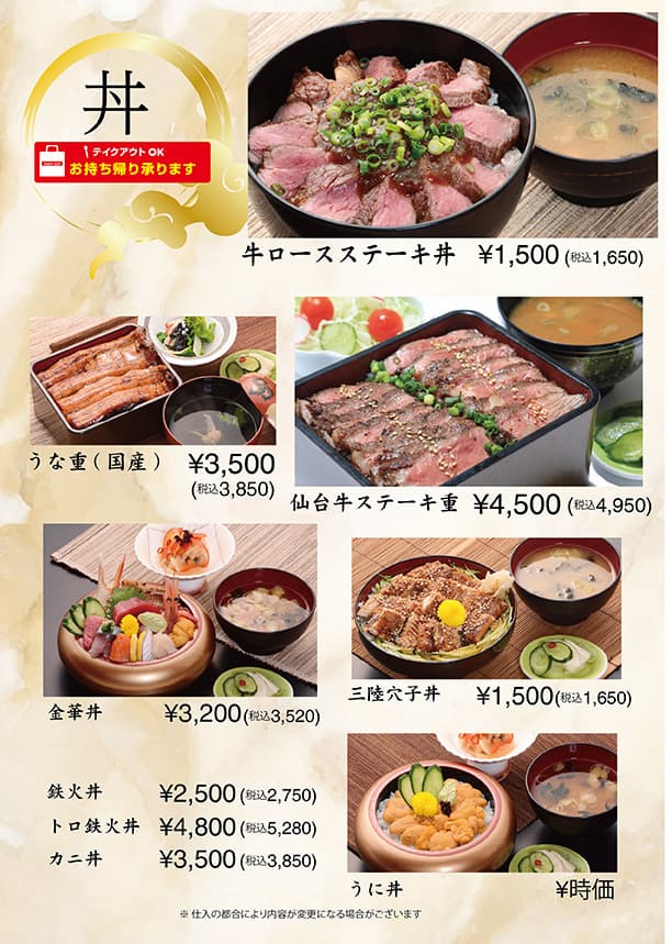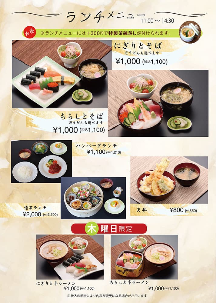 | ※仕入れの都合により内容が変更になる場合がございます。 |